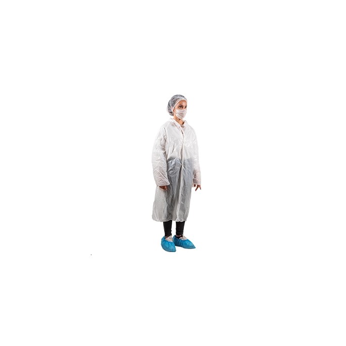 KIT VISITEUR COLIS DE 100 CONTENANT BLOUSE PE, MASQUE PAPIER, CHARLOTTE, SURCHAUSSURES P.E.